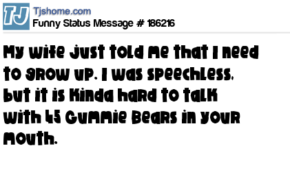 - # 158465 My wife told me I need to grow up. I was speechless. Its really hard to talk with 45 gummy bears in your mouth.