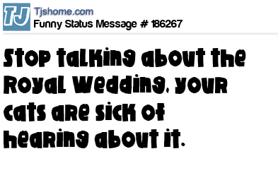X says Stop talking about the Royal Wedding, your cats are sick of hearing about it.