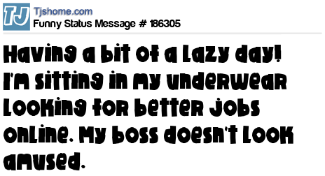 X says Having a bit of a lazy day! I'm sitting in my underwear looking for better jobs online. My boss doesn't look amused.