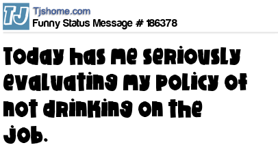 X says Today has me seriously evaluating my policy of not drinking on the job.