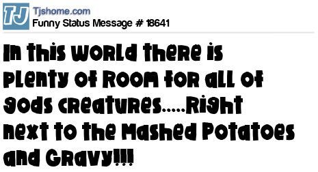 X says In this world there is plenty of Room for all of gods creatures.....Right next to the Mashed Potatoes and Gravy!!!