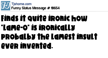 X finds it quite ironic how "Lame-O" is ironically probalby the lamest insult ever invented.