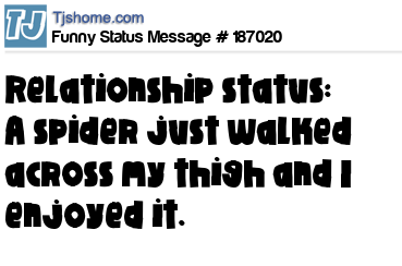 X says Relationship status:   A spider just walked across my thigh and I enjoyed it.