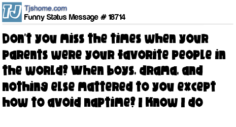 X is Don't you miss the times when your parents were your favorite people in the world? When boys, drama, and nothing else mattered to you except how to avoid naptime? I know I do