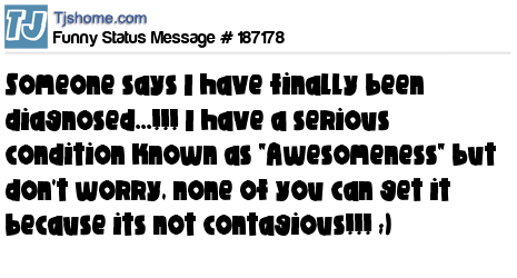 - # 41905 I have finally been diagnosed...!!! I have a serious condition known as "Awesomeness" but don't worry, none of you can get it because its not contagious!!! ;)