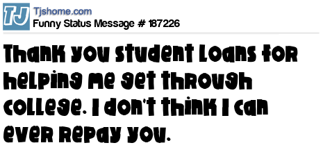 X is Thank you student loans for helping me get through college. I don't think I can ever repay you.