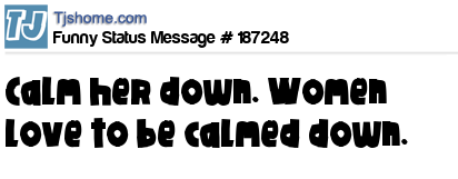 - # 175424 I may never understand women but I do know two words never to say to them, "calm down."