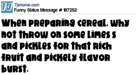 X says When preparing cereal, why not throw on some limes’s and pickles for that rich fruit and pickely flavor burst.