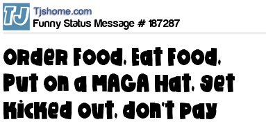 X says Order Food, Eat Food, Put on a MAGA Hat, get kicked out, don't pay