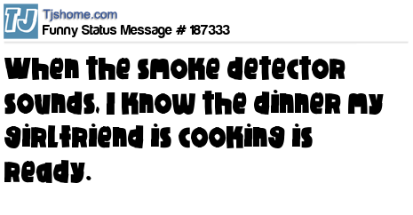 X is When the smoke detector sounds, I know the dinner my girlfriend is cooking is ready.