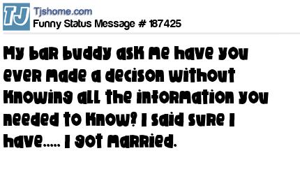 - # 187422 My bar buddy ask me have you ever made a decison without knowing all the facts? I said I sure have....... I got married.