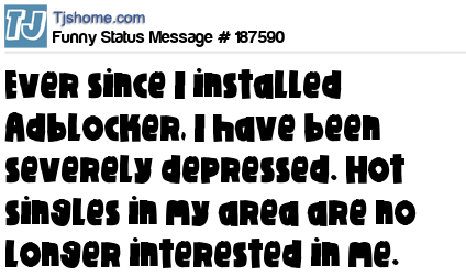 X says Ever since I installed Adblocker, I have been severely depressed. Hot singles in my area are no longer interested in me.