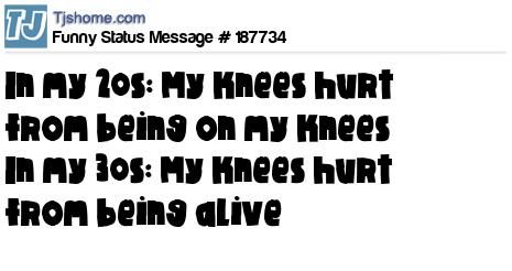 X says In my 20s: My knees hurt from being on my knees 😏 In my 30s: My knees hurt from being alive