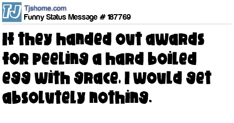 X says If they handed out awards for peeling a hard boiled egg with grace, I would get absolutely nothing.