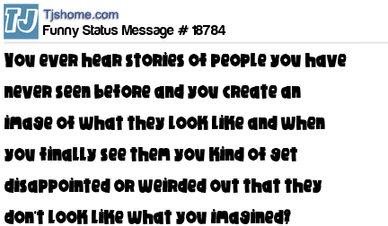 X says You ever hear stories of people you have never seen before and you create an image of what they look like and when you finally see them you kind of get disappointed or weirded out that they don't look like what you imagined?