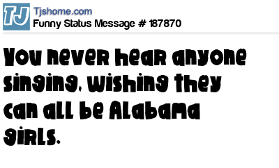 X is You never hear anyone singing, wishing they can all be Alabama girls.