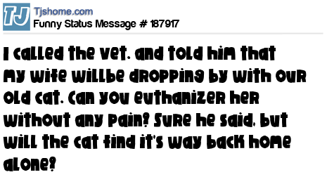 X is I called the vet. and told him that my wife willbe dropping by with our old cat. Can you euthanizer her without any pain? Sure he said, but will the cat find it's way back home alone?