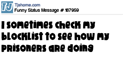 X says I sometimes check my blocklist to see how my prisoners are doing😁