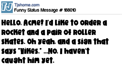 - # 134625 Hello Acme? Me again, I'm gonna need a rocket and some roller skates.. Yeah & a sign with the word yikes on it... No I still haven't caught him