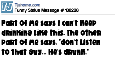 - # 31107 Part of me says I can't keep drinking like this. The other part of me says, "Don't listen to that guy. He's drunk."