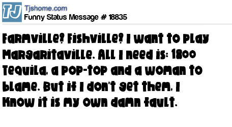 X Farmville? Fishville? I want to play Margaritaville. All I need is: 1800 Tequila, a pop-top and a woman to blame. But if I don't get them, I know it is my own damn fault.