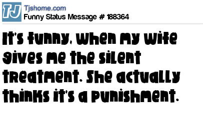- # 88549 It's funny when my wife gives me the 'silent treatment'. Because she thinks it's a punishment.