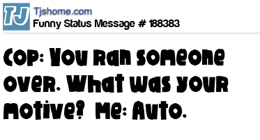 X says Cop: You ran someone over. What was your motive? Me: Auto.