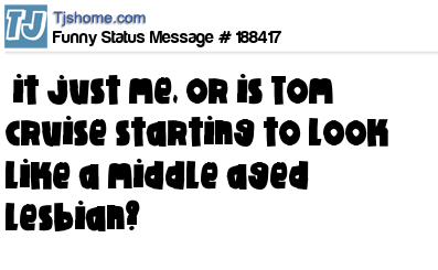 X is it just me, or is Tom cruise starting to look like a middle aged lesbian?
