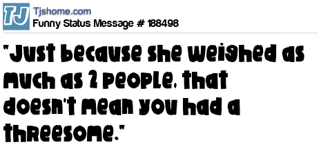 - # 50963 Just because she weighed as much as TWO women...doesn't mean you had a threesome