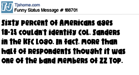 X says Sixty percent of Americans ages 18-25 couldn't identify Col. Sanders in the KFC logo. In fact, more than half of respondents thought it was one of the band members of ZZ Top.