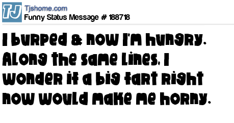 X says I burped & now I'm hungry. Along the same lines, I wonder if a big fart right now would make me horny.