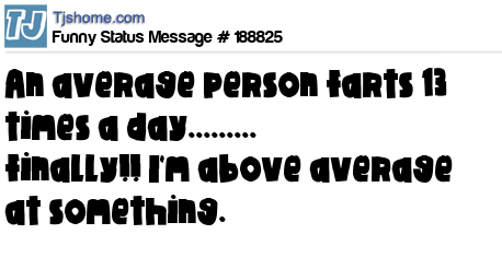 - # 154831 The average person farts 14 times a day. Finally, I'm above average at something!!