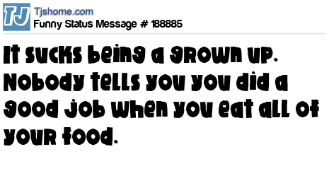 X says It sucks being a grown up. Nobody tells you you did a good job when you eat all of your food.