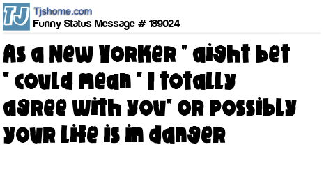 X says As a New Yorker " aight bet " could mean " I totally agree with you" or possibly your life is in danger