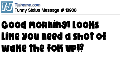 X is Good morning! Looks like you need a shot of wake the fok up!?