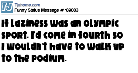 - # 190140 If laziness was an Olympic sport, I would want to come in Fourth so I wouldn't have to walk up to the podium.