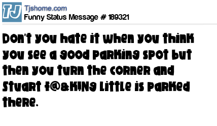 X is Don't you hate it when you think you see a good parking spot but then you turn the corner and Stuart f@&k!Ng little is parked there.