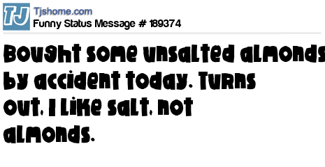X Bought some unsalted almonds by accident today. Turns out, I like salt, not almonds.
