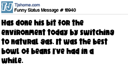X  has done his bit for the environment today by switching to natural gas. It was the best bowl of beans I've had in a while.