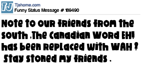 X says Note to our friends from the south ,The Canadian Word EH! has been replaced with WAH ? Stay stoned my friends .