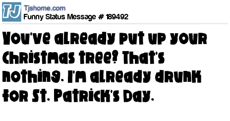 X You've already put up your Christmas tree? That's nothing. I'm already drunk for St. Patrick's Day.