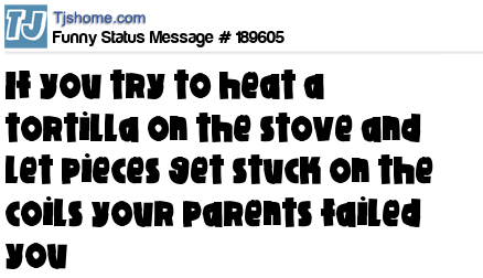 X says If you try to heat a tortilla on the stove and let pieces get stuck on the coils your parents failed you