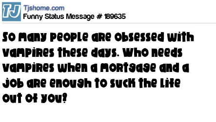 X says So many people are obsessed with vampires these days. Who needs vampires when a mortgage and a job are enough to suck the life out of you?