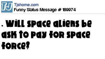- # 188023 I wonder if Trump will make the aliens pay for Space Force?