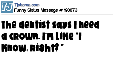 - # 136874 My dentist told me I need a crown. I was like I KNOW, RIGHT?