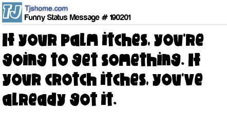 - # 186584 They say if the palm of your hand itches, you're going to get something. And if your crouch itches, you've already got it.