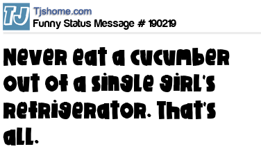 X says Never eat a cucumber out of a single girl's refrigerator. That's all.