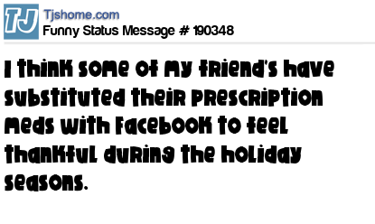 X is I think some of my friend's have substituted their prescription meds with Facebook to feel thankful during the holiday seasons.