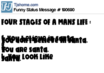 - # 80684 There are four stages of life; 1) You believe in Santa Claus. 2) You don't believe in Santa Claus. 3) You are Santa Claus. 4) You look like Santa Claus.