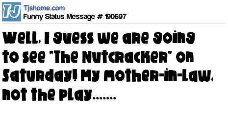- # 119605 I'm taking my family to see the Nutcracker on Saturday. Of course I'm talking about my mother-in-law, not the show.